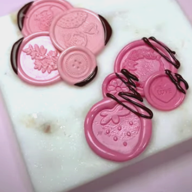 チョコがけシーリング 2025.01.14 いちごのスタンプがかわいいストロベリーチョコシーリング。チョコがけするワックスの温度調節がポイントですね。 テイスト#かわいい アレンジ#カラーワックス #食べ物風配色#ピンク #ブラウン形状#丸 #丸1.5cm #丸2.5cm シーズン#バレンタイン柄#食べ物 #植物 #ハートshare シーリングスタンプ専門店 Show Me. https://pyon-showme.stores.jp/